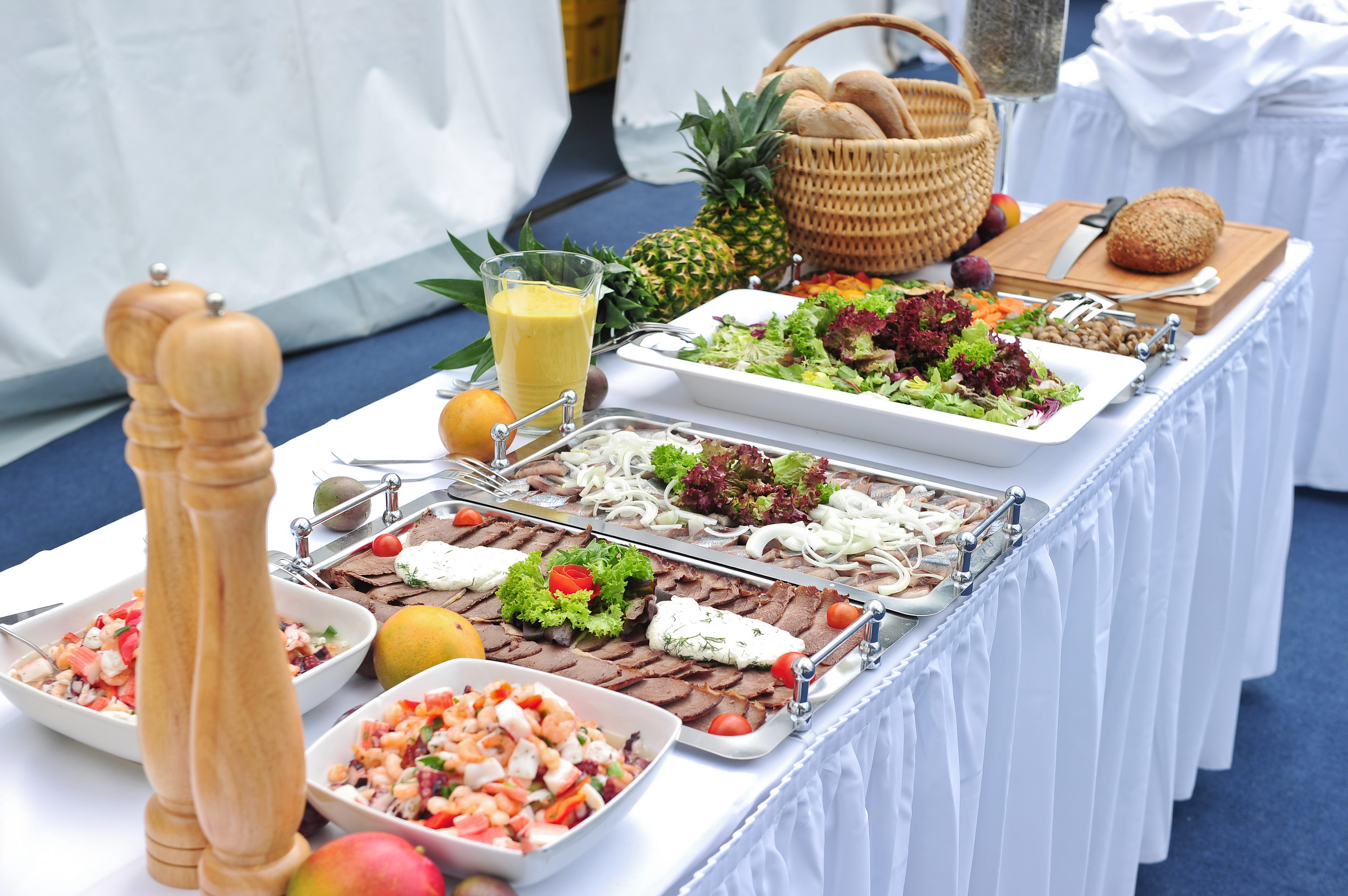Schlichtes Edelstahltablett zum Anrichten von kalten Buffetspeisen.