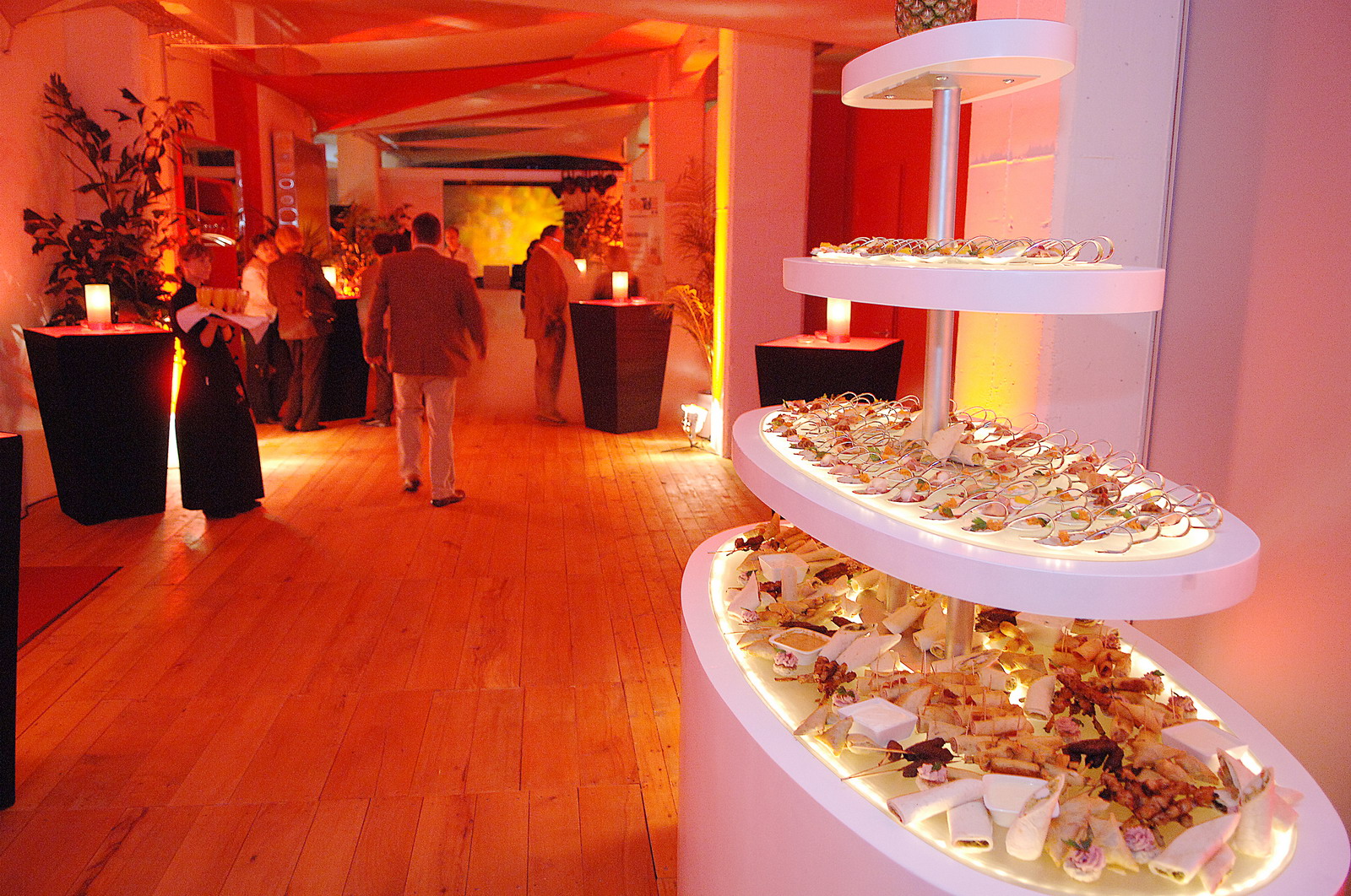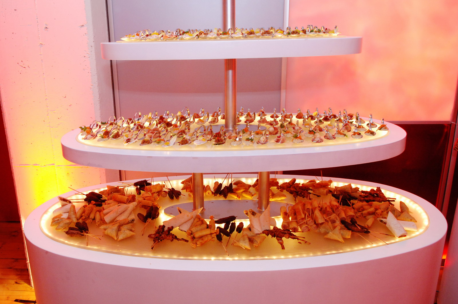 tollen Fingerfood-Etagiere von unten beleuchtet auf 3 Etagen. Gut geeignet um Partylöffel- und gabeln zu servieren, siehe Abb.