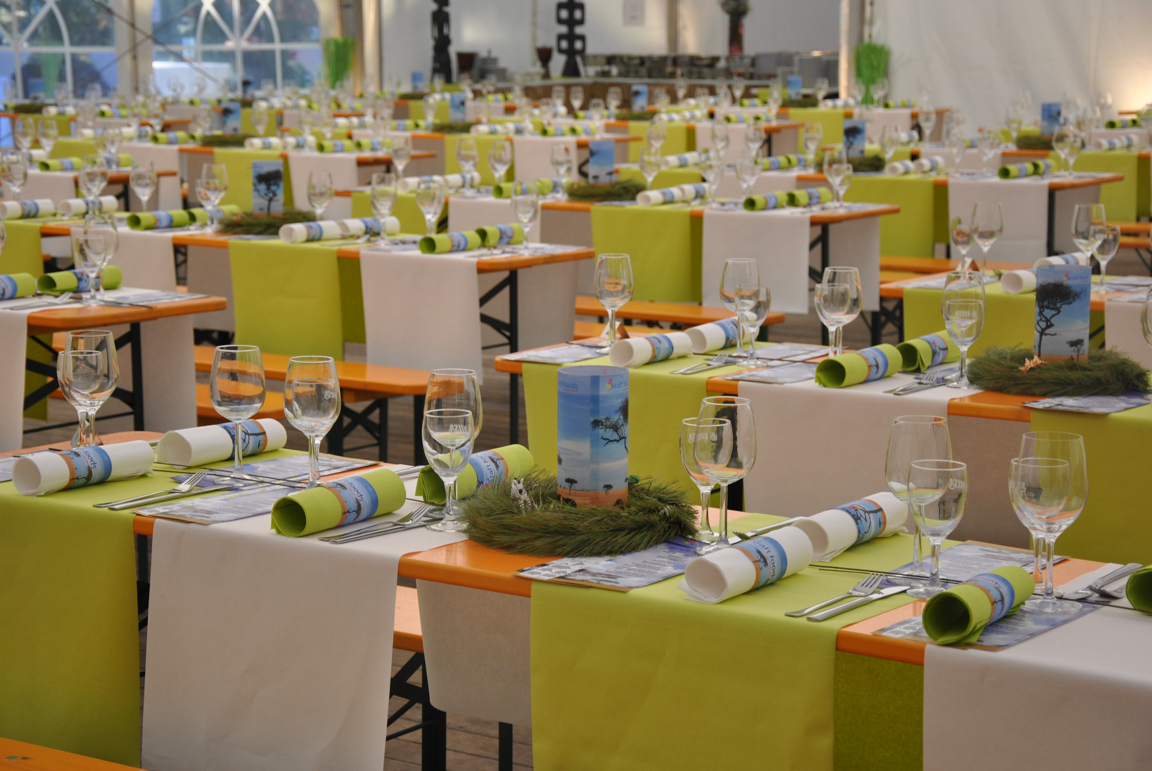 Tisch 50 cm x 220cm und 2 Bänken 220 x 25cm in ockergelb